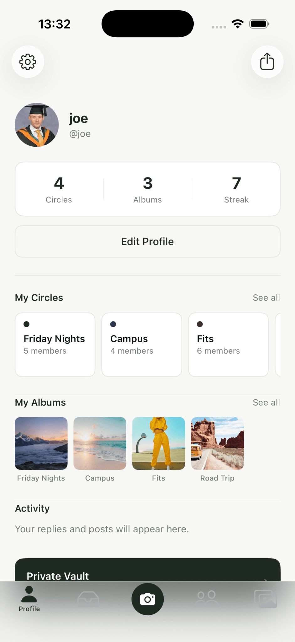 Your profile brings together your circles, albums, and activity in one place.